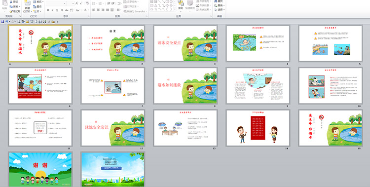 此课件包含:防溺水小常识 认识防溺水标志 意外落水怎么办?学唱防溺水小儿歌