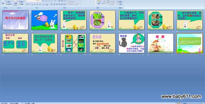 小学一年级语言活动:鸭子和小白兔请客