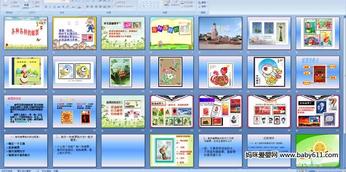 幼儿园大班社会《各种各样的邮票》PPT课件简要介绍: