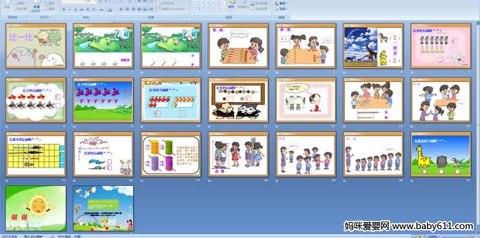 1、通过学生观察,初步感知物体的长短、大小、多少。