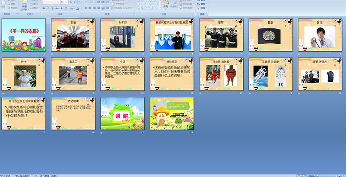 1、认识各行各业的服装特点,知道服装有辨别身份的功能。