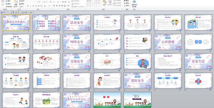 此课件包含:活动安全 网络安全 心理健康 交通安全 居家生活 消防安全